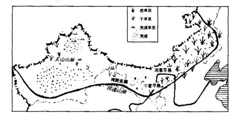 问题: ①描述图中自然景观的变化规律并解释原因。 ②分析该地区面临的主要问题并提出解决途径。
